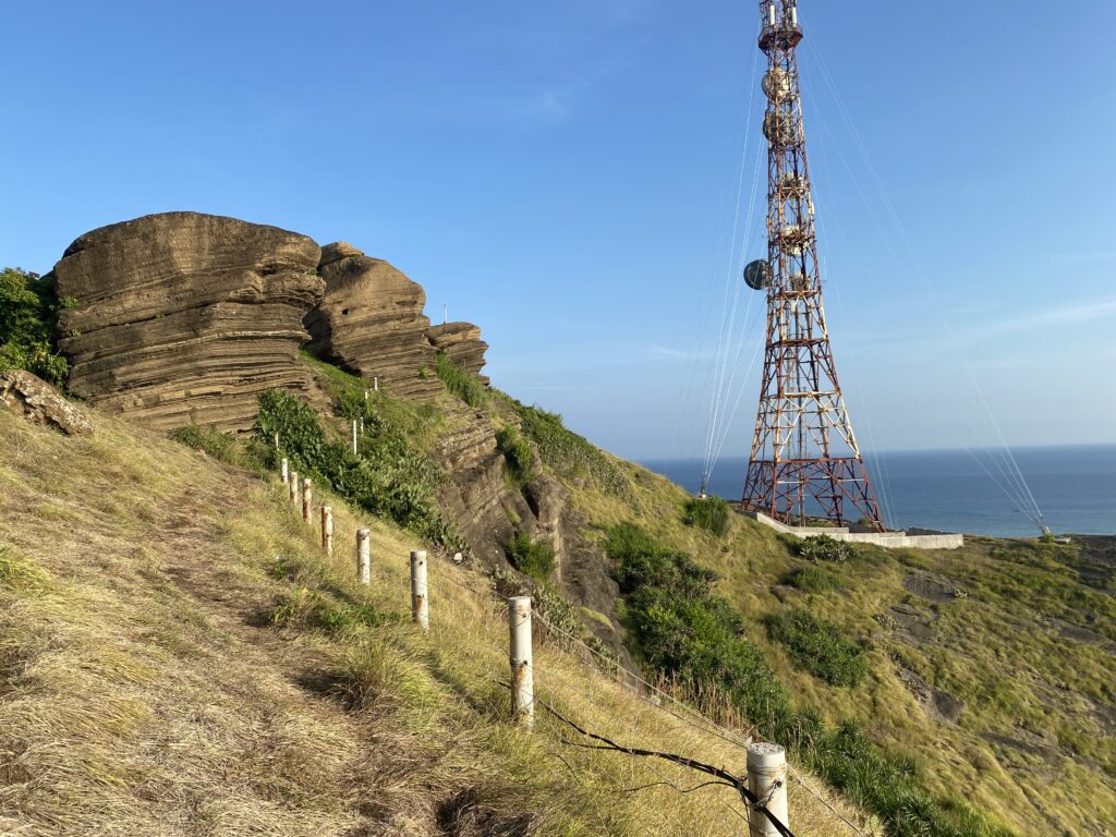 Ngày thứ 3 ở đảo, buổi sáng mình chạy xe lên núi Cao Cát. Để lên đến đỉnh núi bạn sẽ phải trèo lên bậc thang của 1 cái chùa, mình mặc đồ ngắn nên đi vào cũng hơi ngại mà ko còn cách nào khác với mình cũng ko vào trong chùa chỉ đi xuyên qua. Quang cảnh ở trên núi thì rất đẹp, còn cái chỗ tảng đá mà mọi người hay chụp tưởng hùng vĩ lắm nhưng nhìn bằn mắt thường thì thấy cũng bình thường, không kỳ vĩ như mình tưởng tưởng 😀, là do góc chụp thôi ! Cảnh ở đây thì đẹp, nhìn bao quát được gần như cả đảo nhưng mới hơn 7h mà đã nắng sấp mặt.