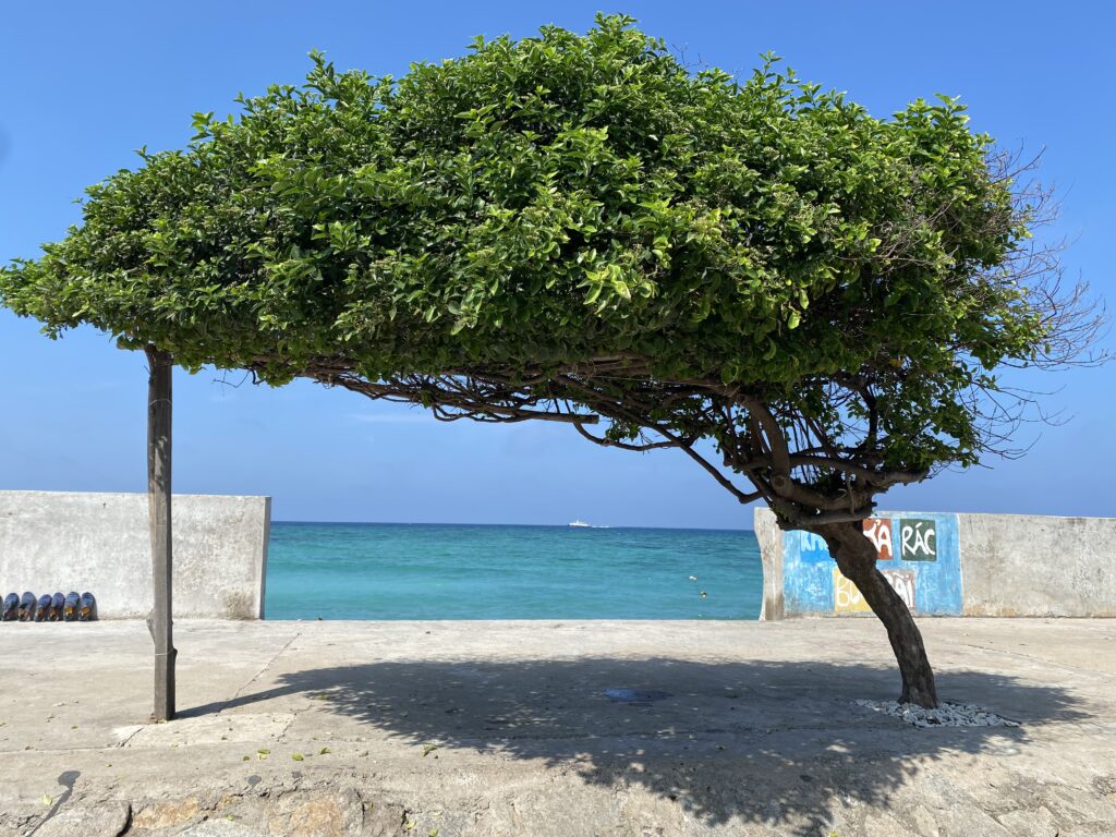 (khung cảnh nhìn từ hàng thông ra chỗ bờ kè đây, nhưng bạn phải thấy tận mắt thì mới cảm nhận được hết vẻ đẹp của nó)